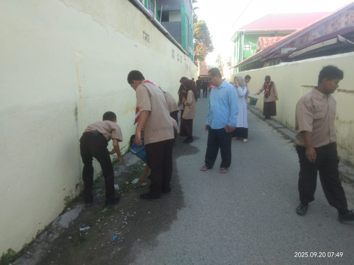 Kegiatan ini diikuti oleh guru-guru, tenaga kependidikan, dan murid-murid kelas IX sebagai wujud kepedulian terhadap kebersihan lingkungan.