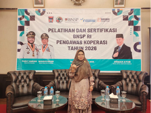 MTsN 2 Kota Padang, Humas — Dalam upaya meningkatkan kompetensi dan profesionalisme tenaga pendidik serta tenaga kependidikan, guru MTsN 2 Kota Padang Sri Yuliarni mengikuti kegiatan Pendidikan dan Pelatihan (Diklat) sekaligus Sertifikasi bagi Pengawas Koperasi yang mengacu pada standar Badan Nasional Sertifikasi Profesi (BNSP RI).