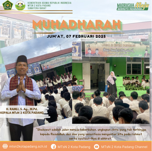 MTsN 2 Kota Padang, Humas – Kegiatan muhadharah yang diadakan di halaman Madrasah Tsanawiyah Negeri (MTsN) 2 Kota Padang pada hari Jumat pagi, 7 Februari 2025, sukses berjalan dengan penuh semangat. Acara yang diselenggarakan oleh kelas IX.1 ini berlangsung khidmat di bawah bimbingan wali kelas Mera Arliza, S.Ag., dengan berbagai rangkaian acara yang sangat menarik dan bermanfaat bagi seluruh siswa.