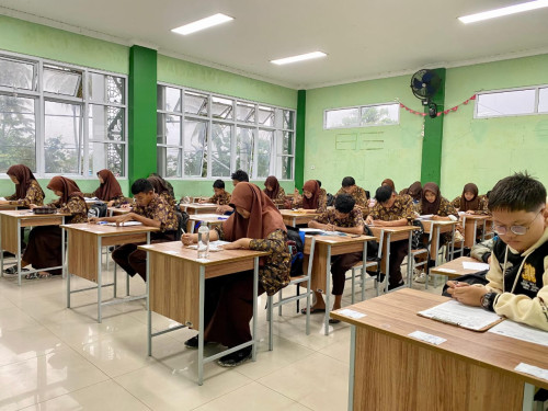 Asesmen dilaksanakan secara tertib di ruang-ruang kelas yang telah dipersiapkan panitia, lengkap dengan guru pengawas yang ketat untuk memastikan pelaksanaannya berjalan lancar, objektif, dan kondusif.